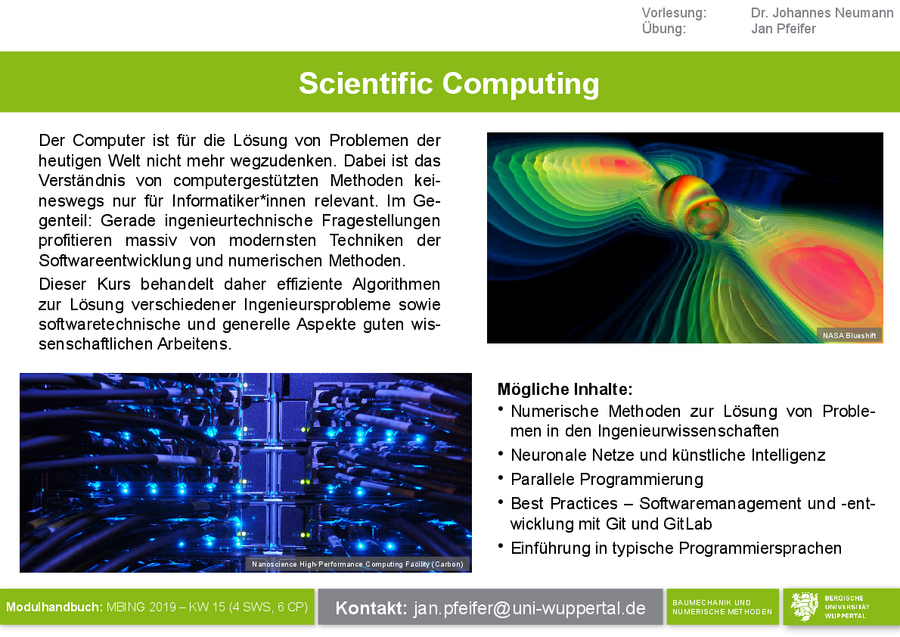 Neue Veranstaltungen Scientific Computing und Continuum Mechanics